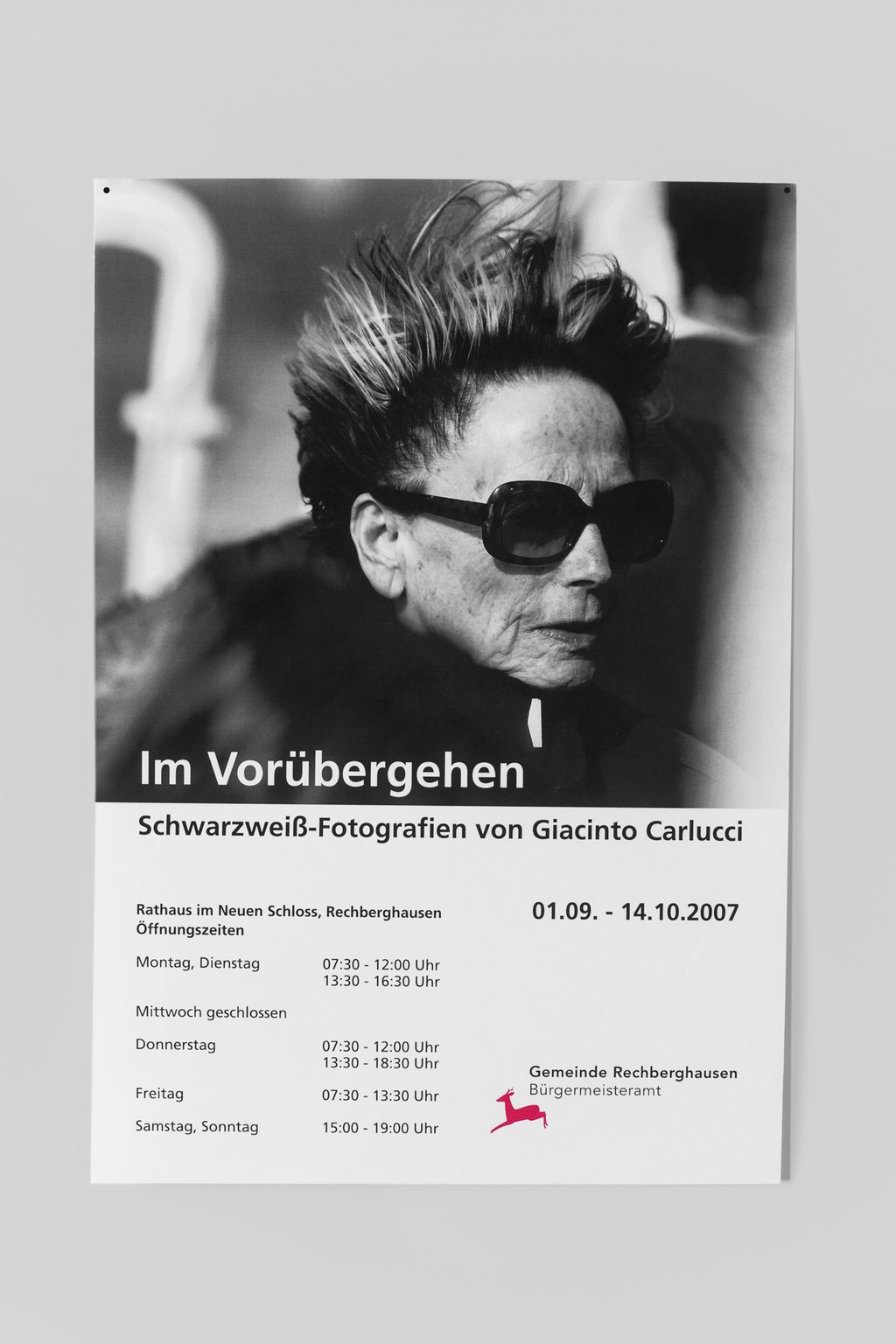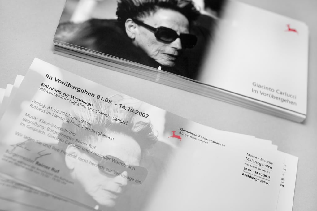 Gestaltung der Plakate und Einladungskarten zur Eröffnung der Austellung »Im Vorübergehen« (01.09. - 14.10.2007) des im Kreis Göppingen bekannten Fotografen Giacinto Carlucci im Rathaus in Rechberghausen.